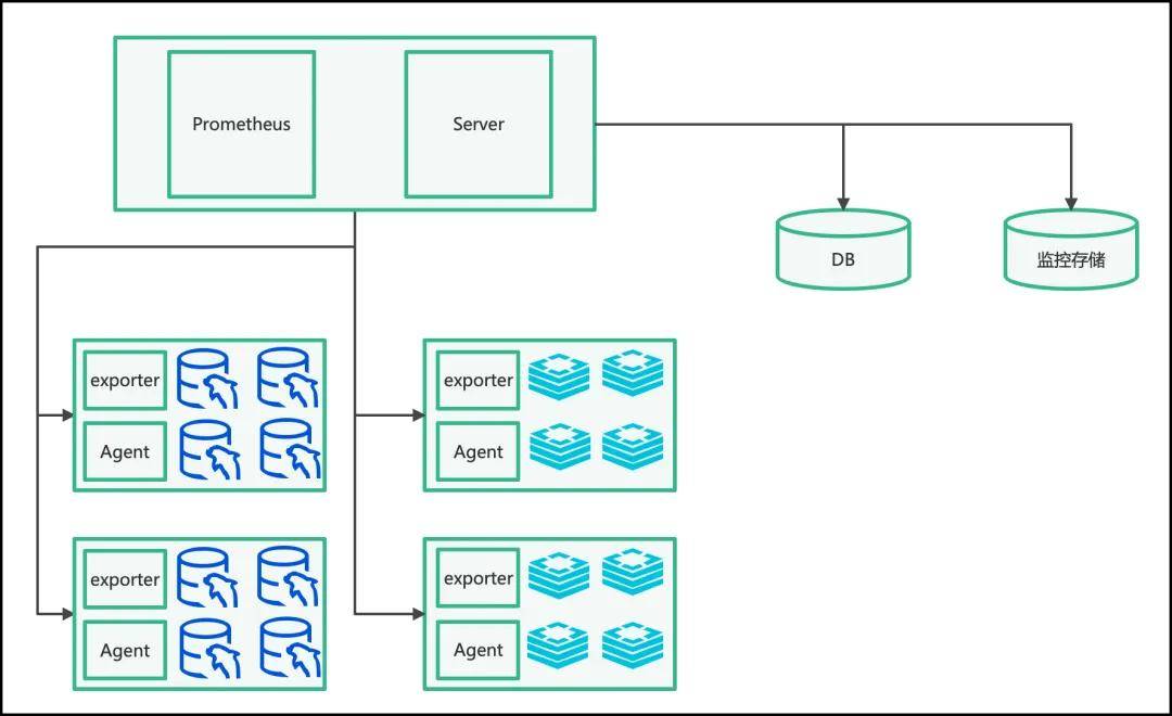 exporter:prometheus的数据采集端,需要运行在被采集的服务器上,将采集到的监控数据转化为prometheus能识别的格式,prometheus会定时从exporter上拉取数据。