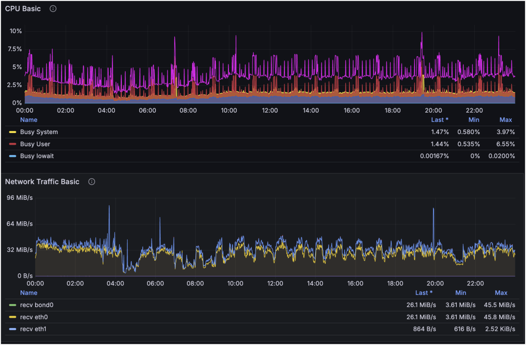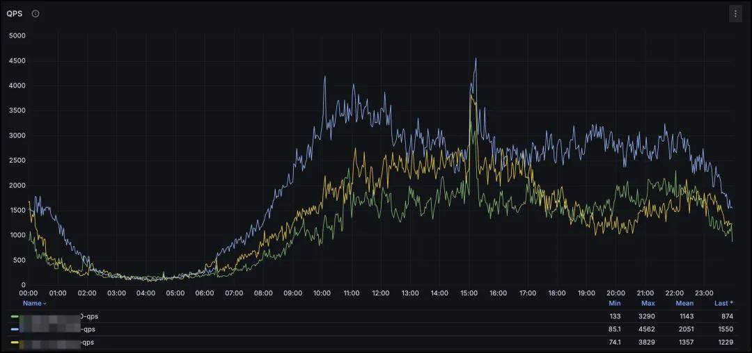 每天0点之后逐渐走向低峰期,最低点在凌晨4点左右,之后逐步开始走出低峰期,大约在8点有定时任务直到12点,然后下午逐步走入高峰期,晚上高峰持续,23点之后就逐渐走低。其中8:00到12:00左右是因为业务的定时任务造成的压力,且定时任务不可以取消,业务期望尽快执行完成。