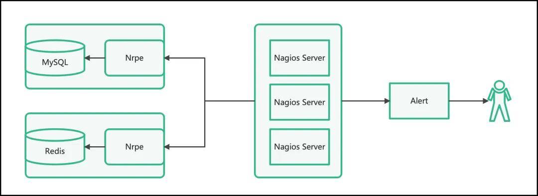每个数据库服务器上部署一套nrpe服务,nagios server会定时向nrpe服务发起检测请求,nrpe执行检查脚本,并将结果返回给nagios server。nagios server通过判断之后将需要告警的信息发送给alert服务,alert服务会做二次判断,并补充一些元数据信息,将告警信息发送给相关的负责人。
