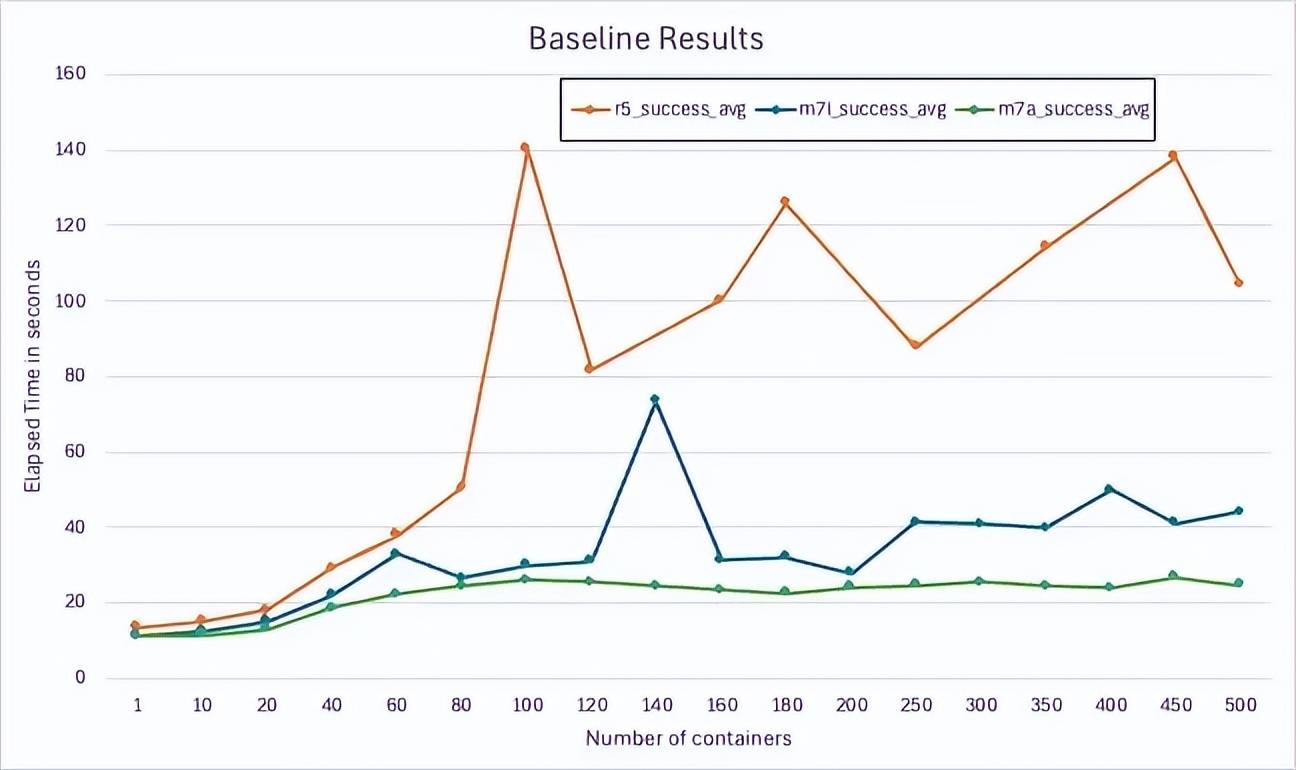 图 3 显示了在每种实例类型上扩展容器的基线结果: