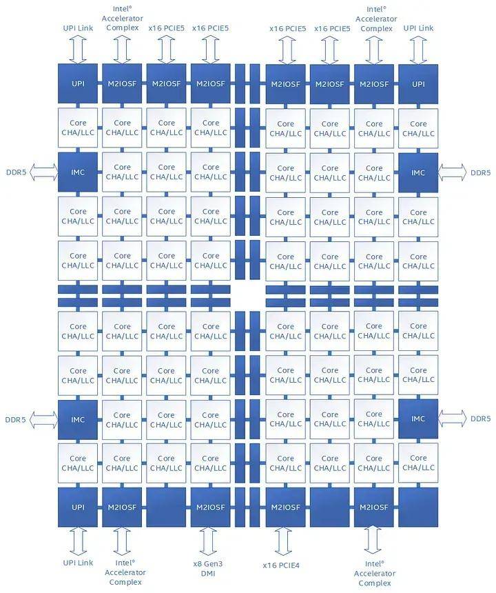 一些现代服务器 CPU 采用分布式、基于芯片组的架构(图 8),其中多个核心复合体(每个复合体都有自己的本地末级缓存)通过高速互连结构连接。在这些设计中,缓存一致性在每个核心复合体内部进行管理,复合体之间的流量则由可扩展的控制结构处理。与采用集中式队列结构的网状架构不同,这种分布式方法将争用分散到多个域中,从而降低了因全局锁争用而导致的严重停顿的可能性。对于关注技术细节的读者,主流 CPU 厂商的公开技术文档会提供关于分布式缓存与芯片组设计的深度解析。