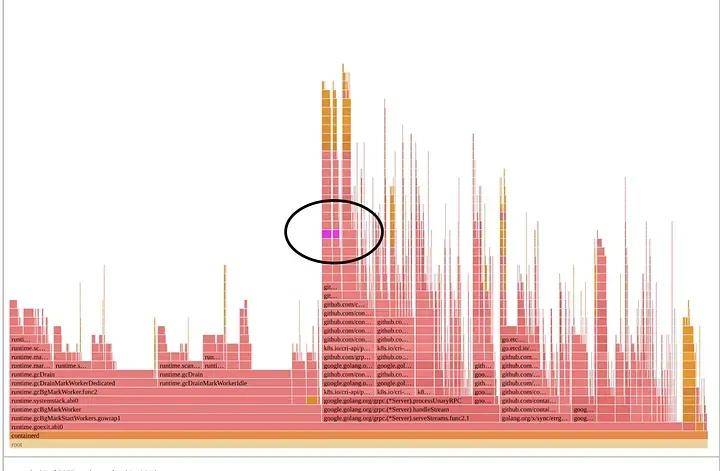 由于使用新版 API 需要使用新内核,我们选择进行后一项更改,以惠及更多社区成员。如此一来,containerd 的火焰图不再被挂载相关操作所主导。事实上,如下图 11 所示,不得不将它们用紫色高亮显示才能看到。