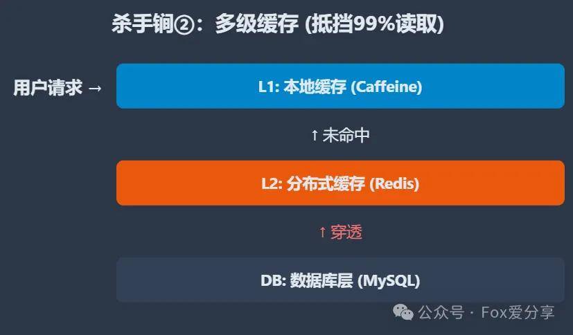 只有当两级缓存全部“失守”,请求才被允许“穿透”到最后的数据库层。