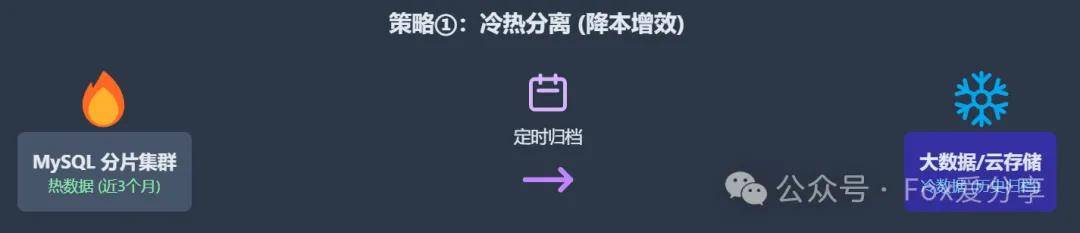 你需要展现出数据生命周期管理的思维。将超过一定期限(如一年)且访问频率极低的“冷数据”,从昂贵的MySQL集群中归档到成本更低的存储系统,如HBase、ClickHouse或是云厂商的对象存储(OSS/S3)。这既是为核心库“减负”,也是为公司“省钱”。