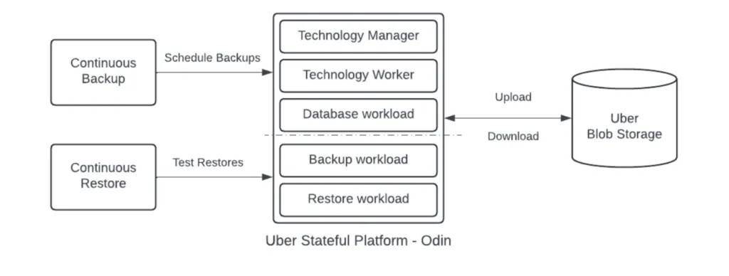 对于任何存储技术,每个备份工作负载都会执行数据库快照逻辑并上传到 Uber 的 blob 存储。