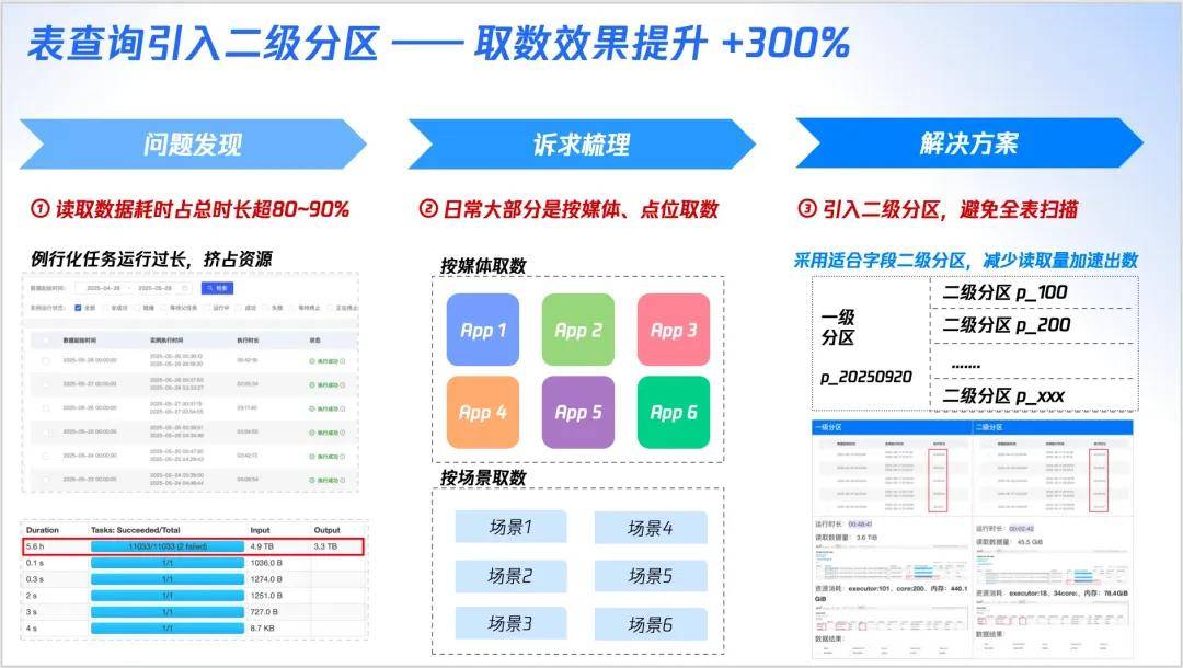 大家都可能会遇到过,查询日增数据3~5TiB(40~60亿记录)甚至更大超级大表 往往容易遇到查询特别慢的情况,我们如何进行优化呢。下面从问题发现、问题定位、问题解决等多个维度,深入探讨如何提升TDW(Hive表) 海量数据场景下的查询效率。